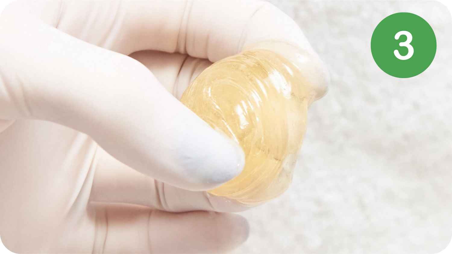 Usando guanti in nitrile o vinile, prelevare una noce di prodotto e ammorbidire la pasta tra le dita per rendera elastica e malleabile. Formare una pallina
